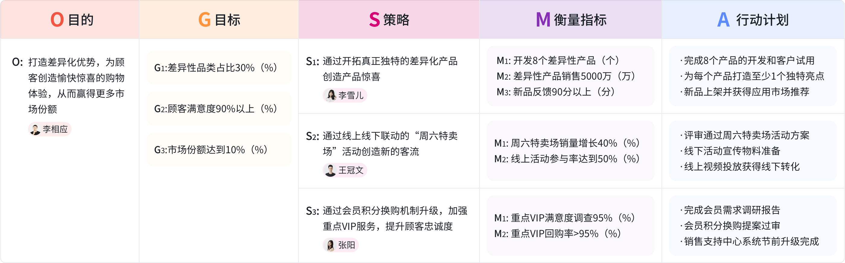 北极星特色的"OGSM-A"强调以关键行动(A)来细化目标(O)的实现路径情况