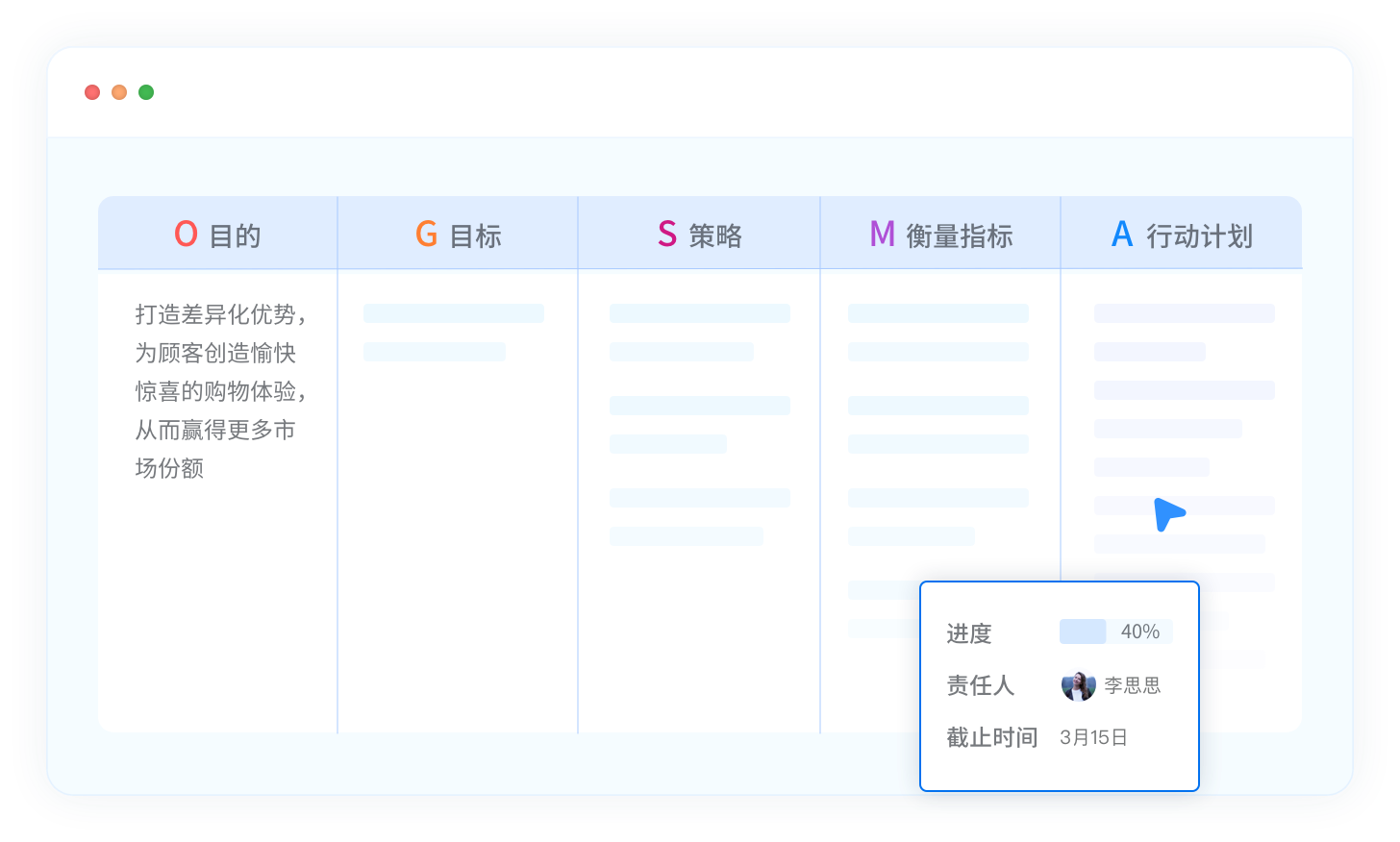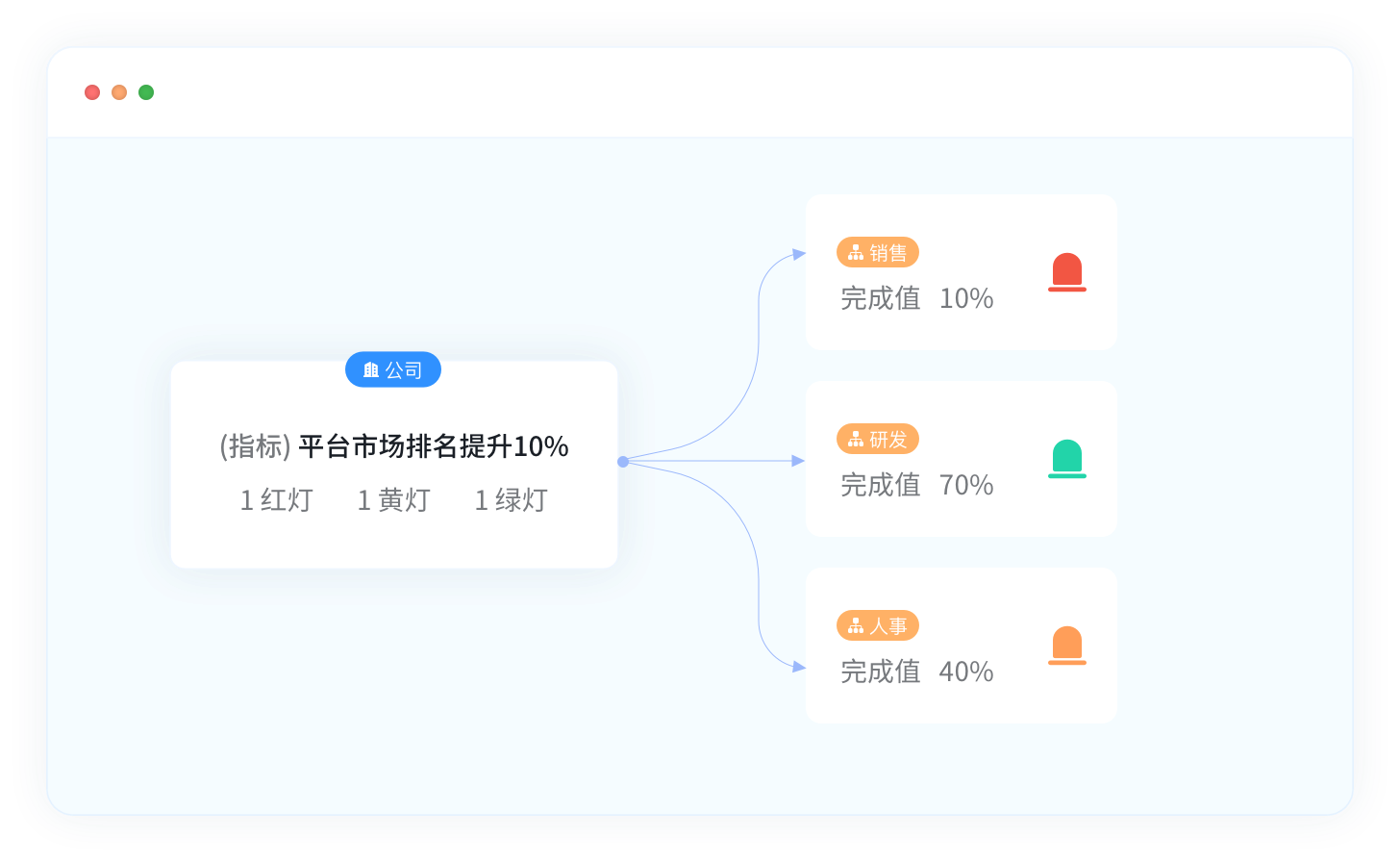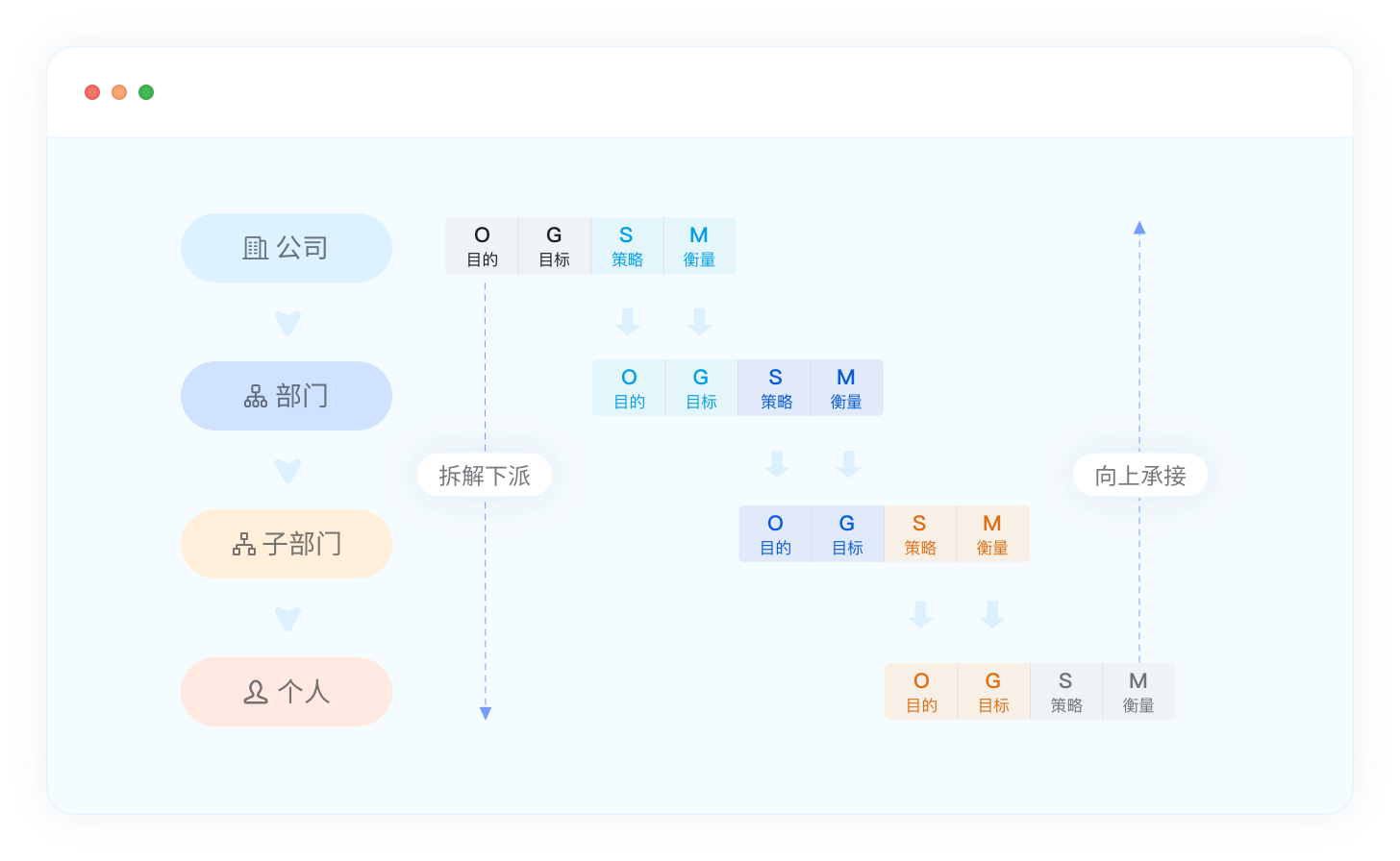 系统支持层级拆解目标,确保从领导层到每一个员工都能对战略有清晰一致的理解,从而提升执行效率