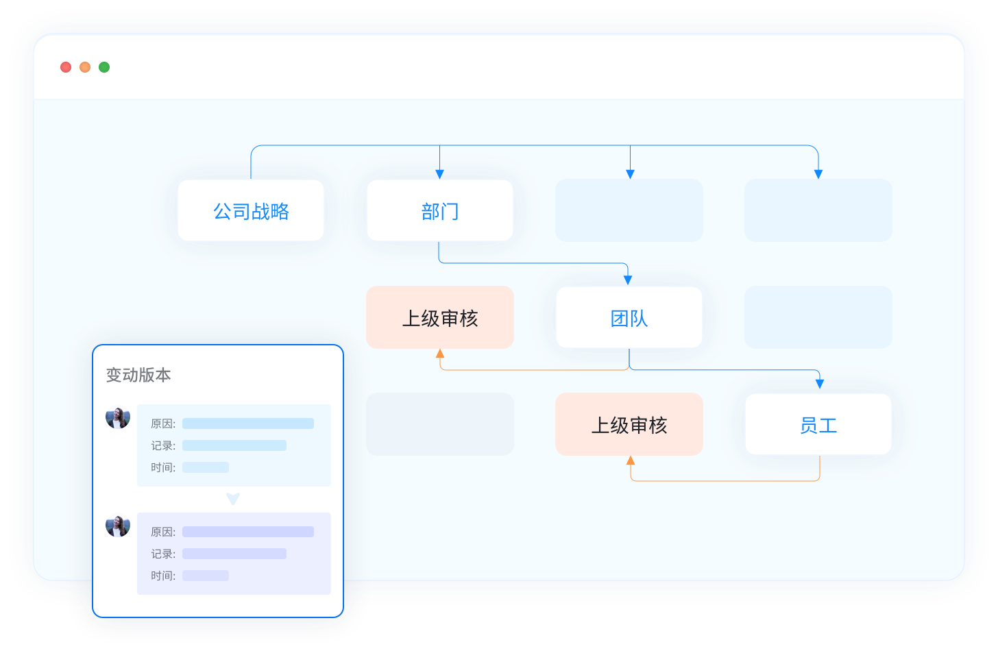通过模块化分解方式,快速响应外部变化,当战略变动时,自动同步并通知相关负责人,确保目标进度落实